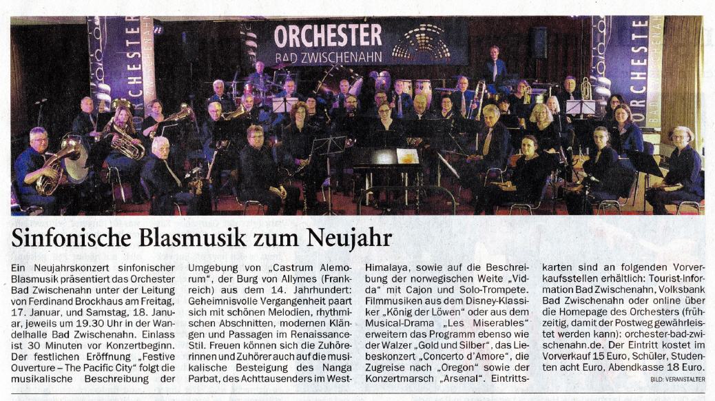 Ankündigung des Neujahrskonzertes am 19.01.2024 in der Wandelhalle Bad Zwischenahn