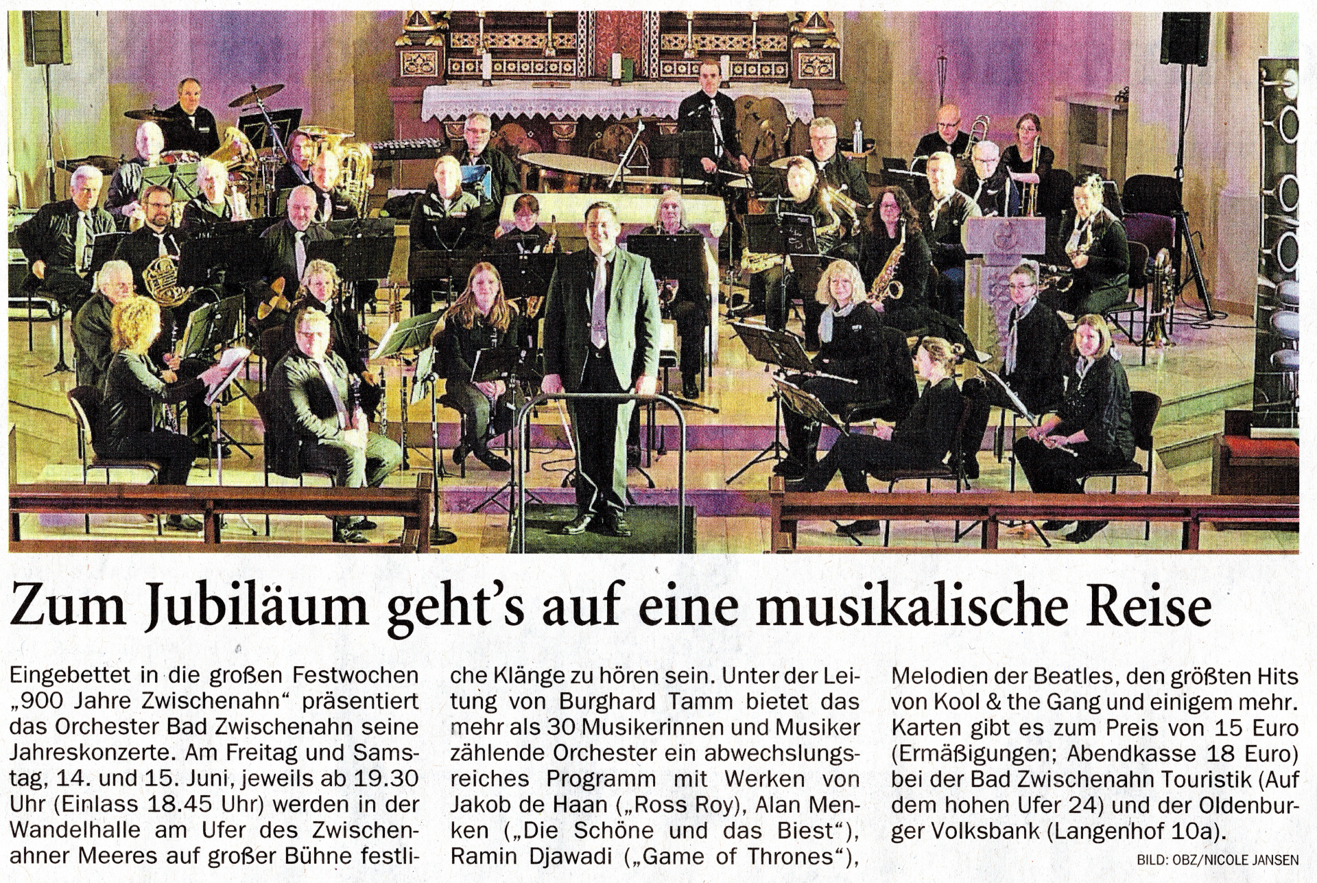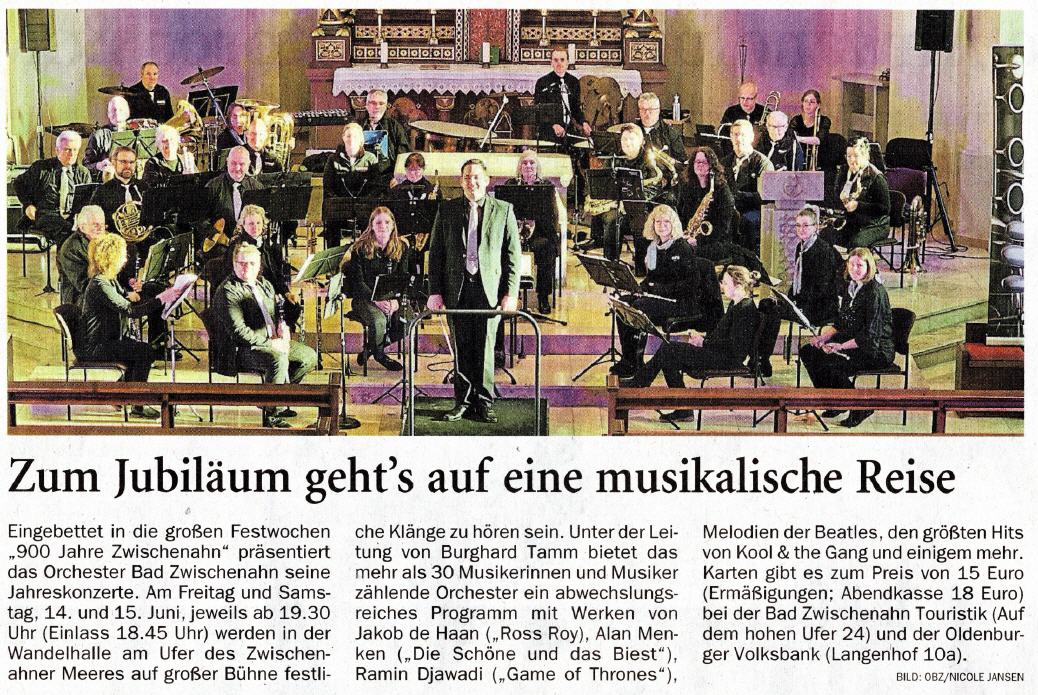 Ankündigung der Jahreskonzerte am 14. und 15.06.2024 in der Wandelhalle Bad Zwischenahn